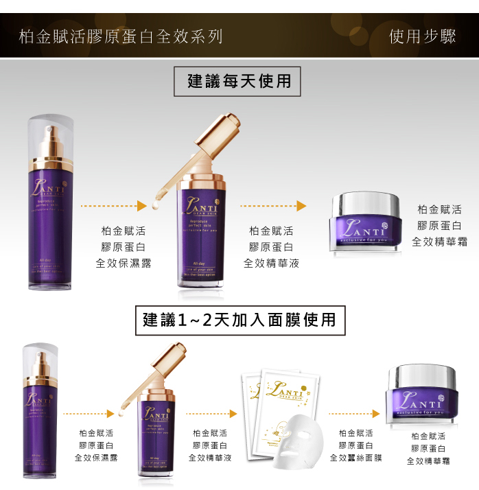 ◆商品名稱: Lanti柏金賦活膠原蛋白全效保濕露
