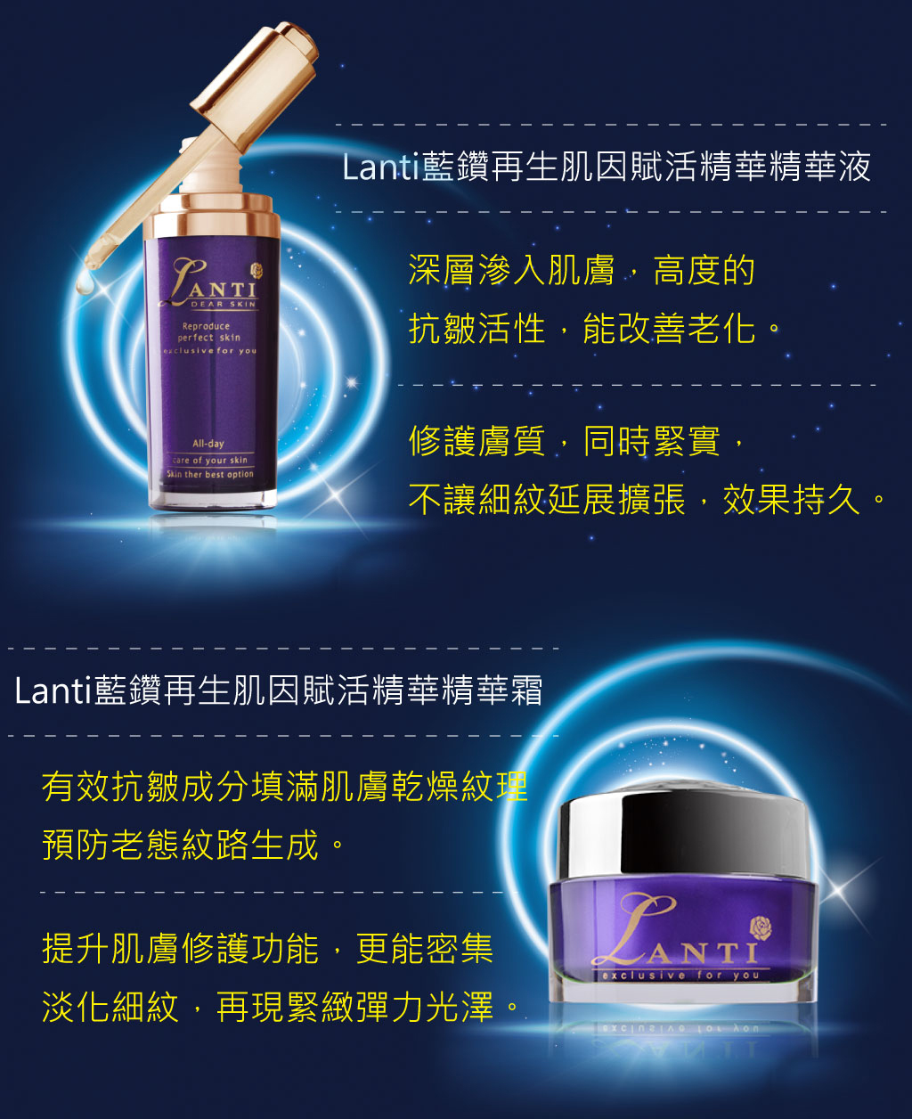 ◆商品名稱: Lanti藍鑽再生肌因賦活精華精華液